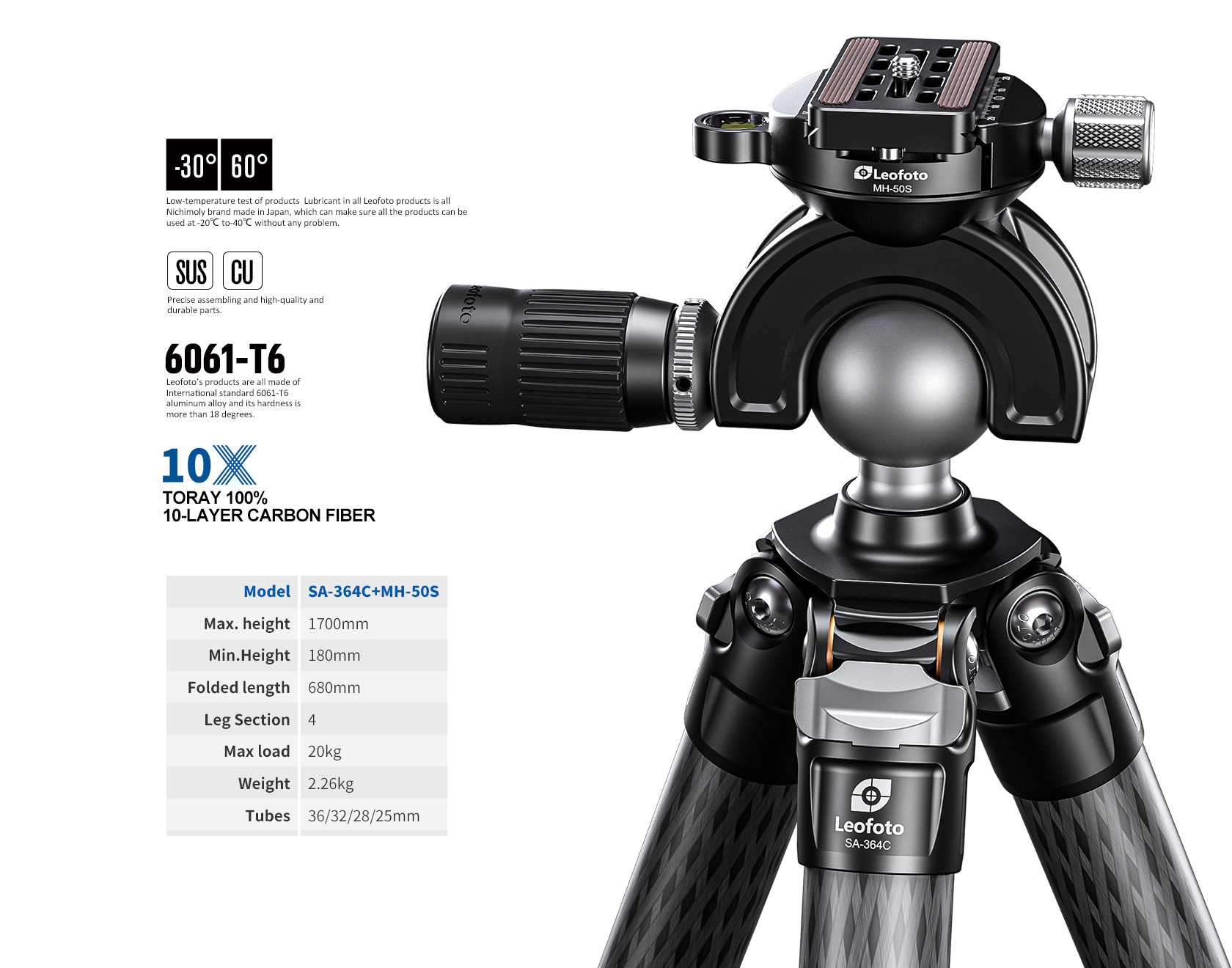 Leofoto SA-364C+MH-50S Professional carbon fiber Tripod