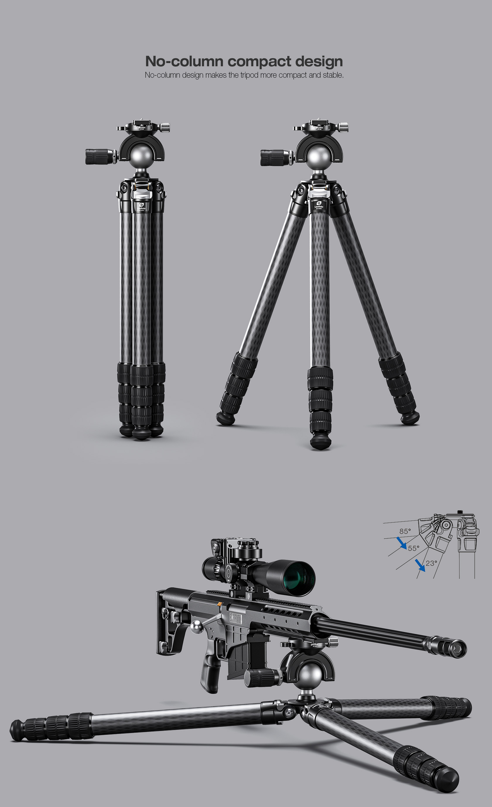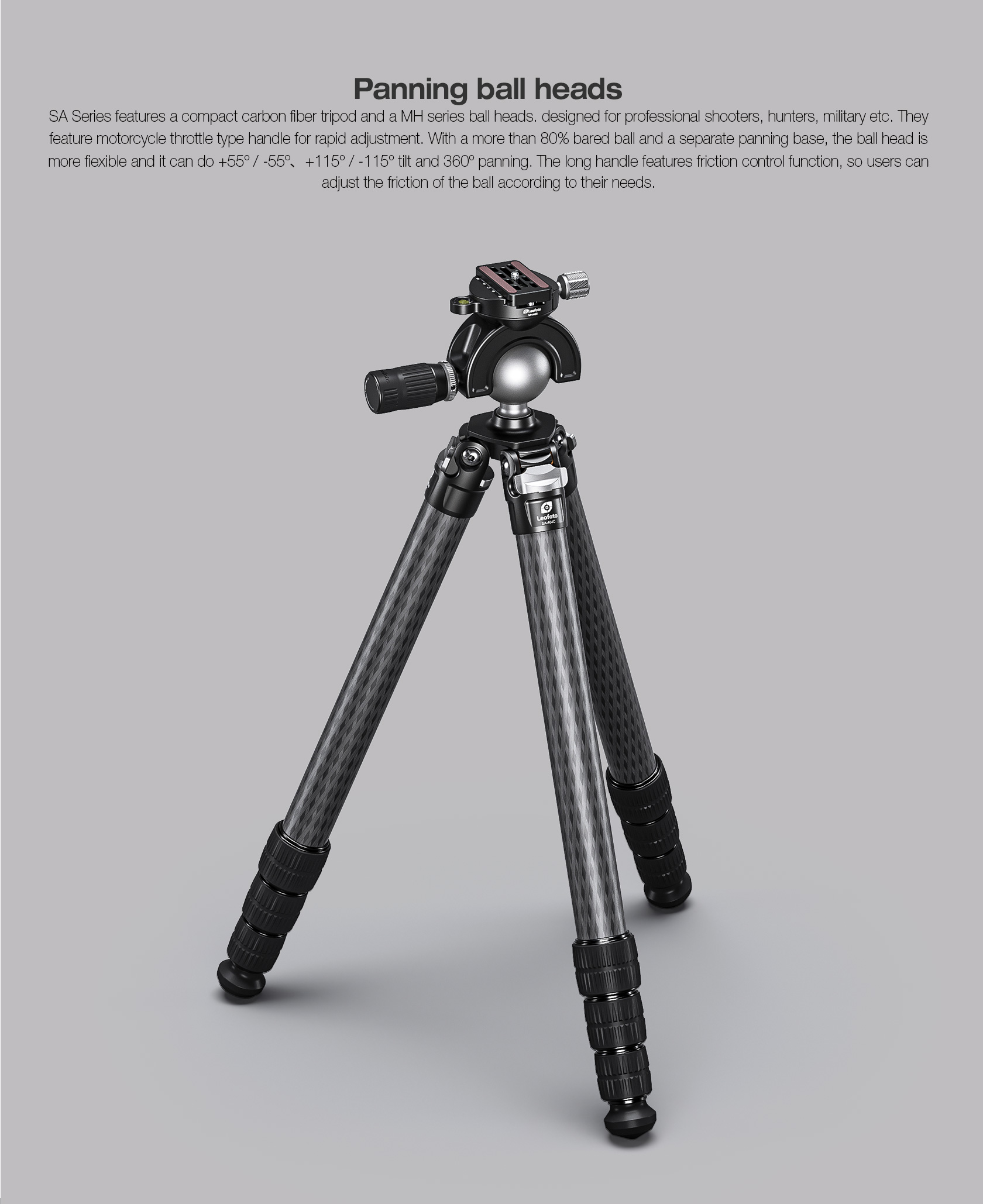 The Leofoto SA Series tripods are one of the most compact collapsed setups on the market with a perfectly balanced weight to strength ratio. The angle stop design has also been improved from the standard pull tab to a knurled bar which allows the user to adjust the angles with only one hand as opposed to two. The SA Series offers unparalleled versatility, built as a hunter’s companion who also enjoys long days on the range, but most requested by military, law enforcement, competitive shooters or those simply looking for one of the most compact and reliable shooting supports on the market. The SA Series tripods offer maximum rigidity, capable of supporting non-traditional shooting positions with a heavy load capacity. These tripods feature three angle stop positions to increase shooting capabilities and a compact design which maintains a small footprint, creating a tripod setup which is extremely easy to pack and carry on the go.
