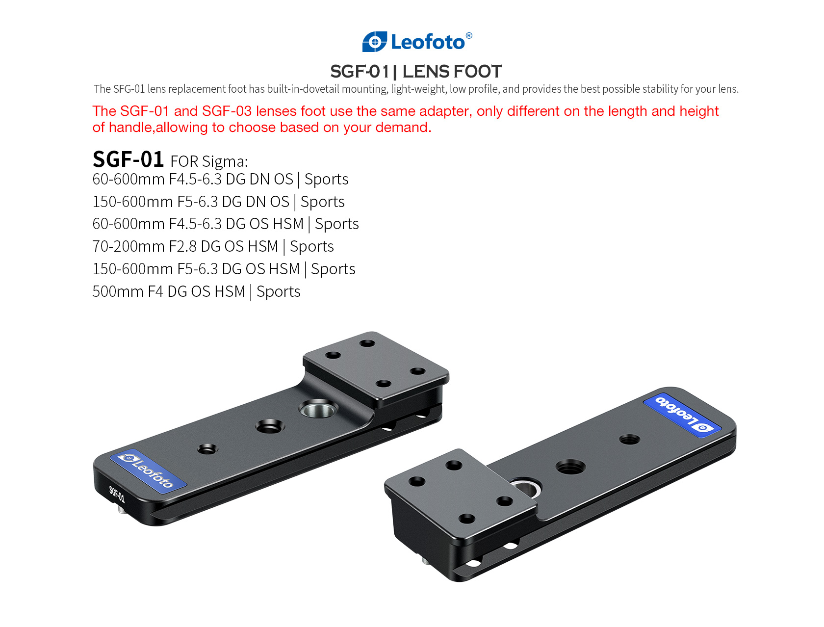 / Leofoto SGF-01 Replacement Lens Foot for Sigma 150-600mm F5-6.3 S / 60-600mm F4.5-6.3 DG DN OS Sports / 70-200mm F2.8 DG OS HSM Sports