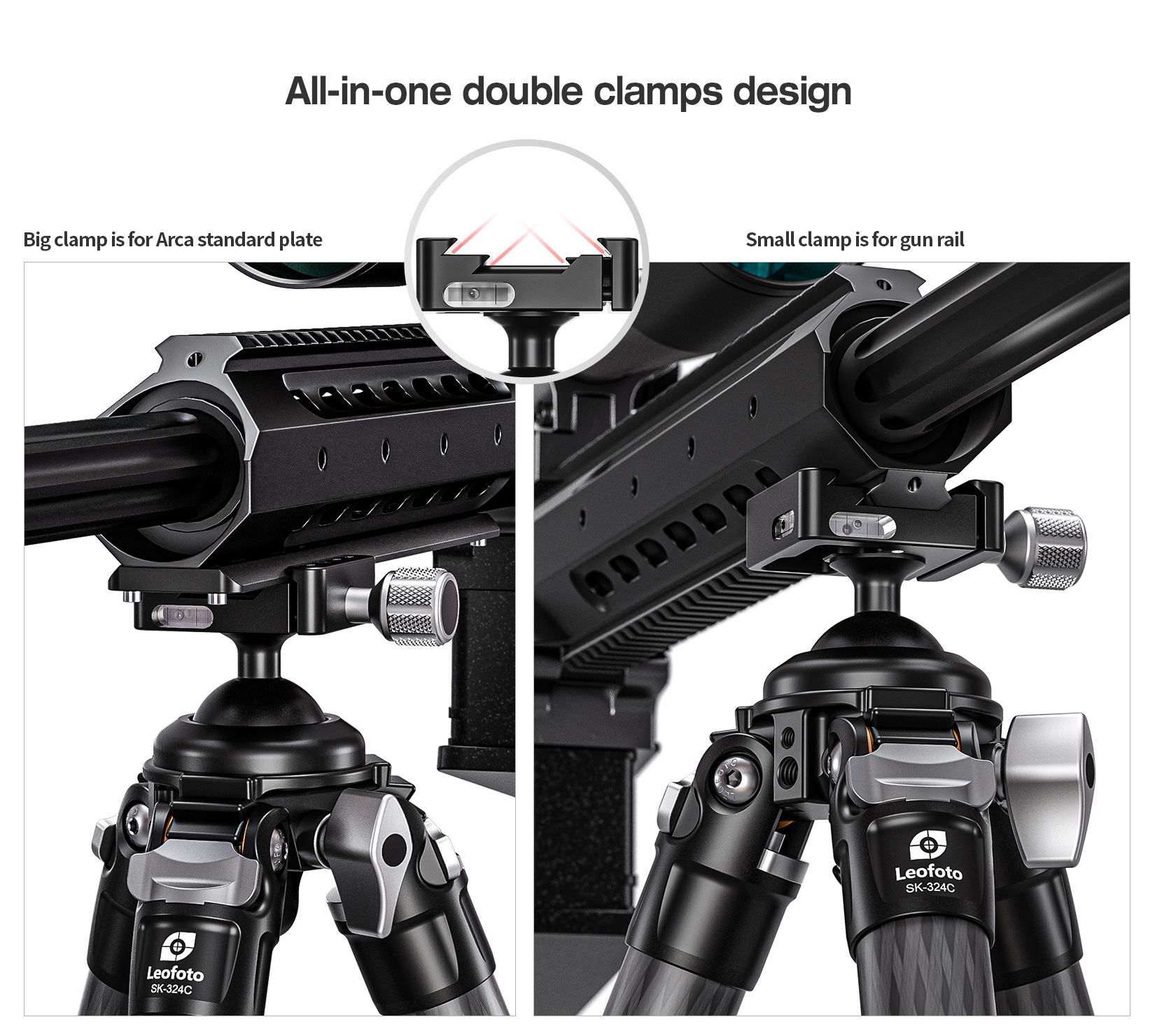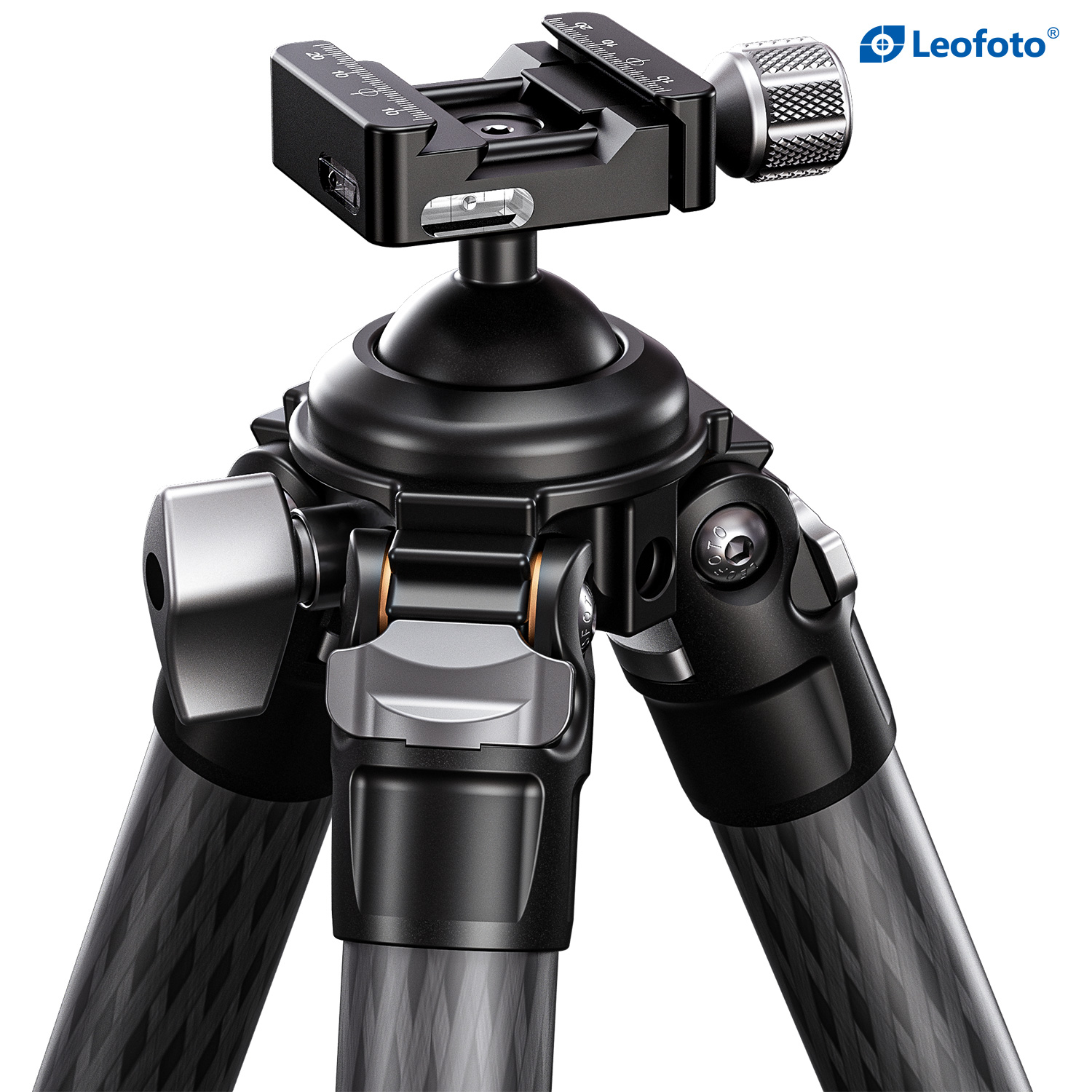 * Integrated knob control ballhead with lever-release clamp for speed
