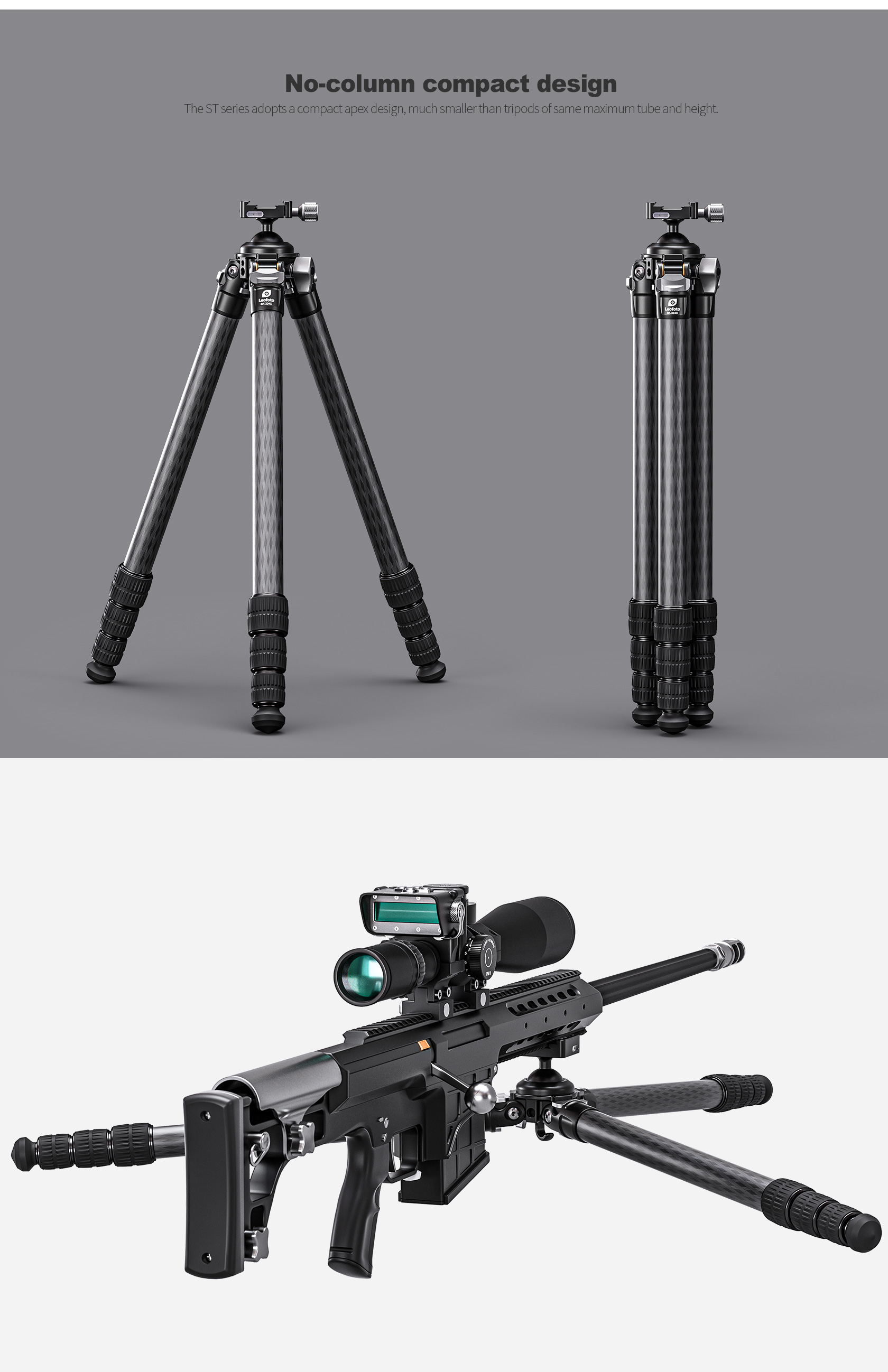 * Tripods must occasionally withstand tremendous bending and torsion loads. It is crucial that the leg angle stops and all other structural joints are well supported. Leofoto offset leg joints fully support the leg angle stops allowing loads to be transferred straight through the strongest members of the tripod. This also means the tripod is more compact when collapsed