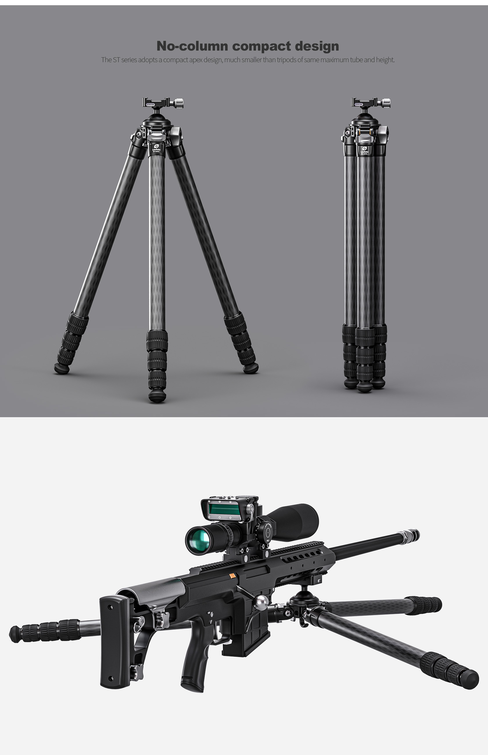* Tripods must occasionally withstand tremendous bending and torsion loads. It is crucial that the leg angle stops and all other structural joints are well supported. Leofoto offset leg joints fully support the leg angle stops allowing loads to be transferred straight through the strongest members of the tripod. This also means the tripod is more compact when collapsed