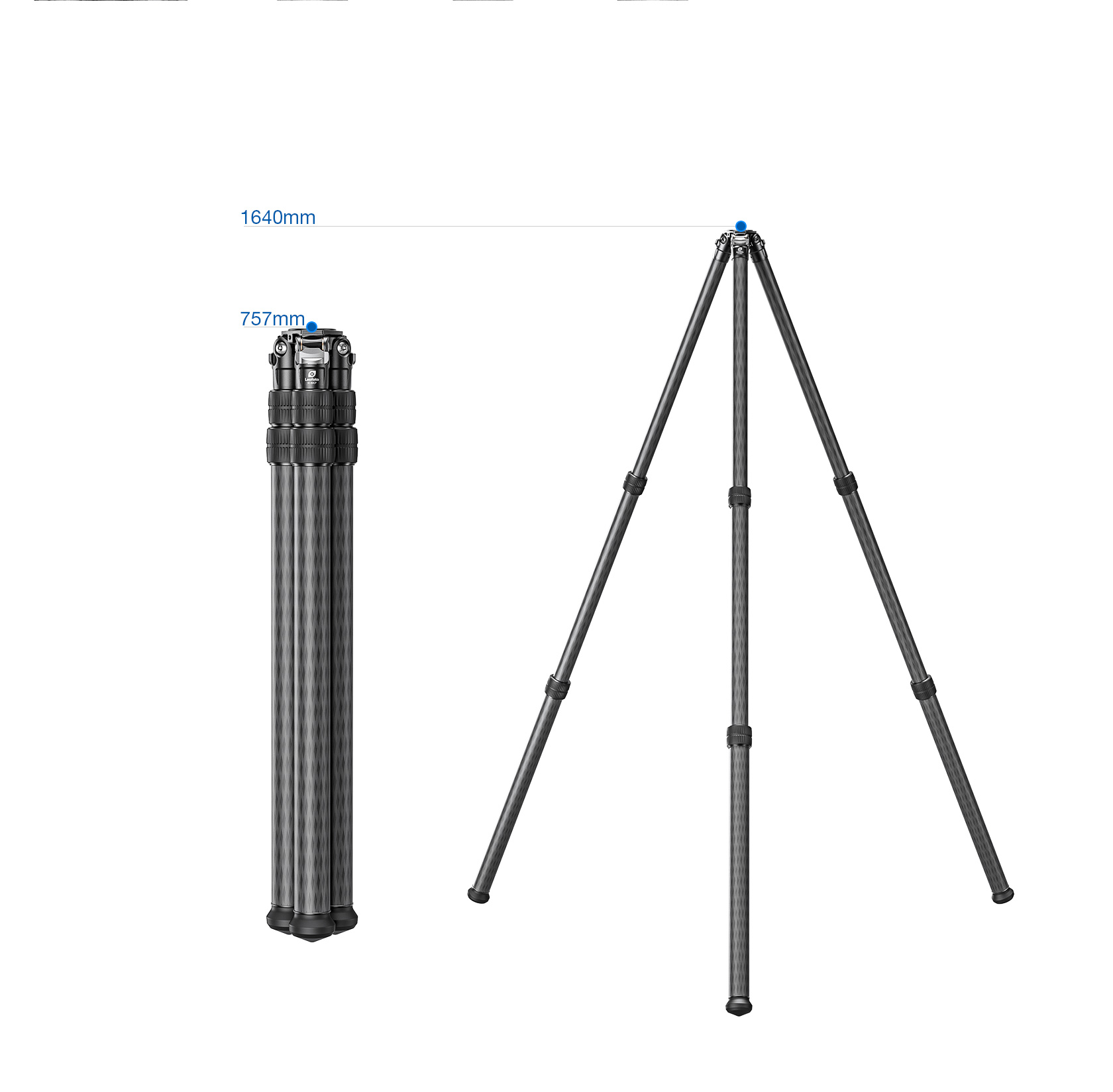 The carbon fiber legs are inverted, with the widest tube at the bottom, for added stability and incredibly quick full collapse and deployment. The legs feature twist-lock joints, individual spread and three available locking positions making it possible to achieve the proper level even when on uneven terrain. This lightweight tripod has a fixed apex/platform which is more compact than the larger SO series tripods.