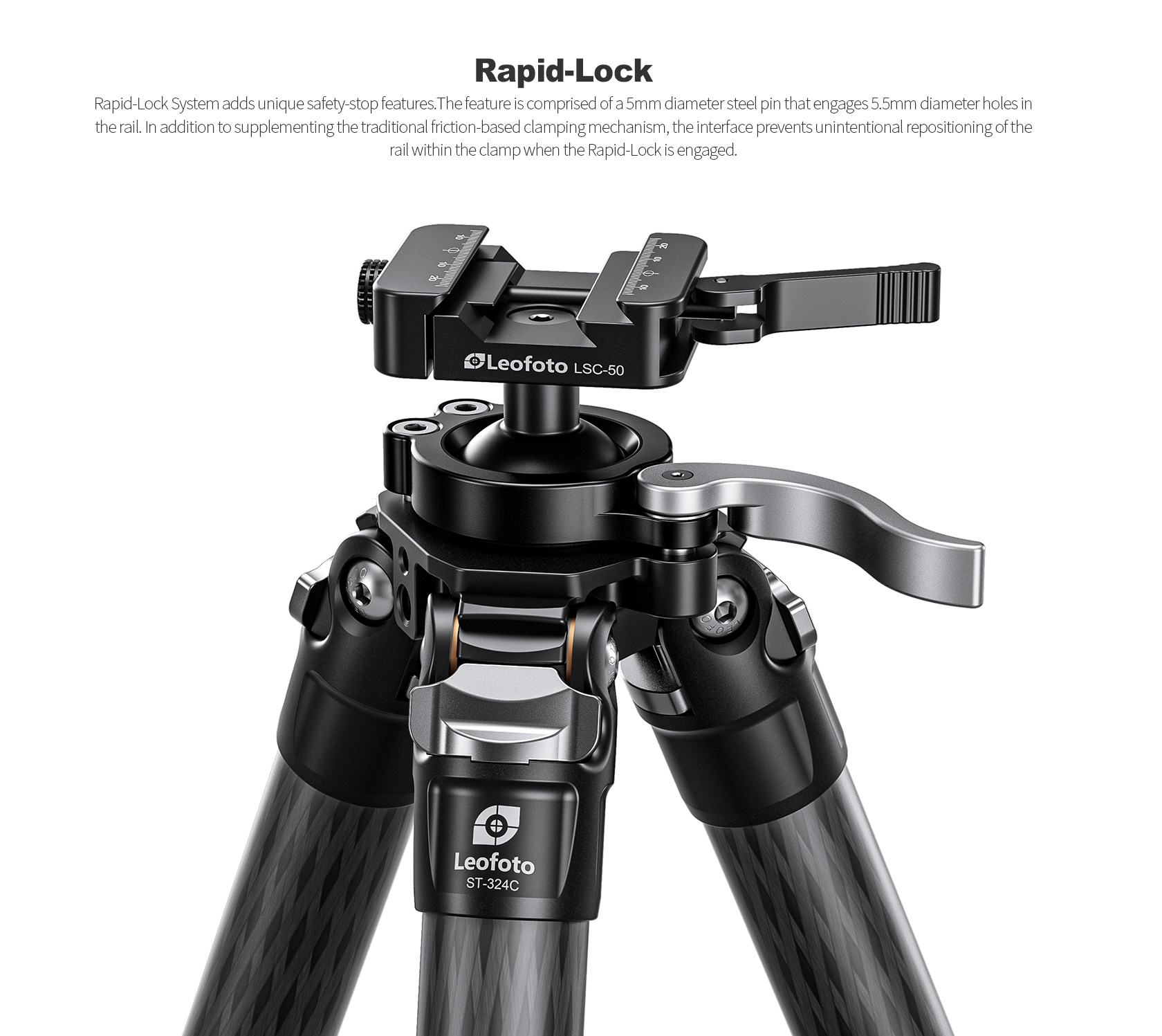 * InTripods must occasionally withstand tremendous bending and torsion loads. It is crucial that the leg angle stops and all other structural joints are well supported. Leofoto offset leg joints fully support the leg angle stops allowing loads to be transferred straight through the strongest members of the tripod. This also means the tripod is more compact when collapsed
