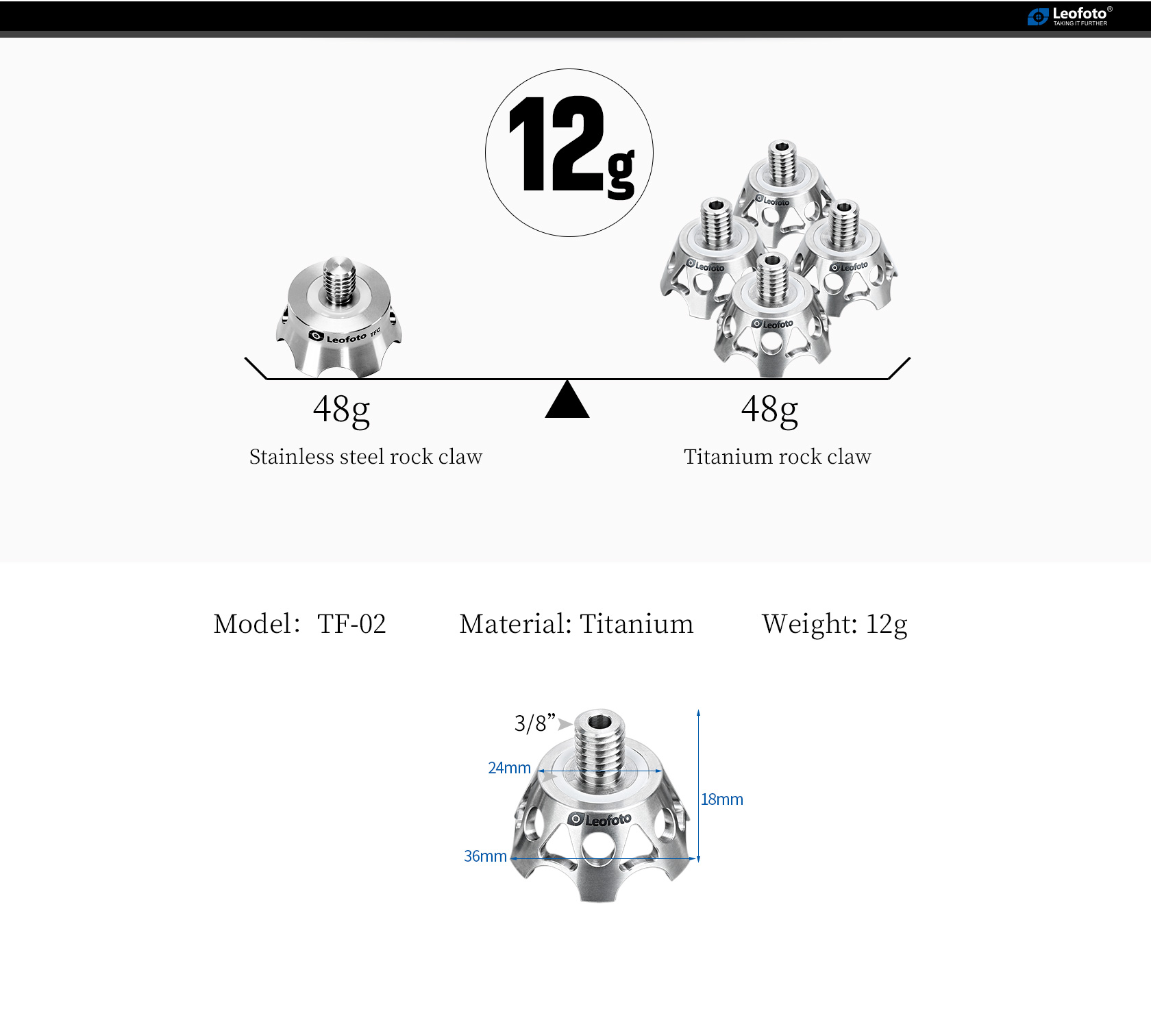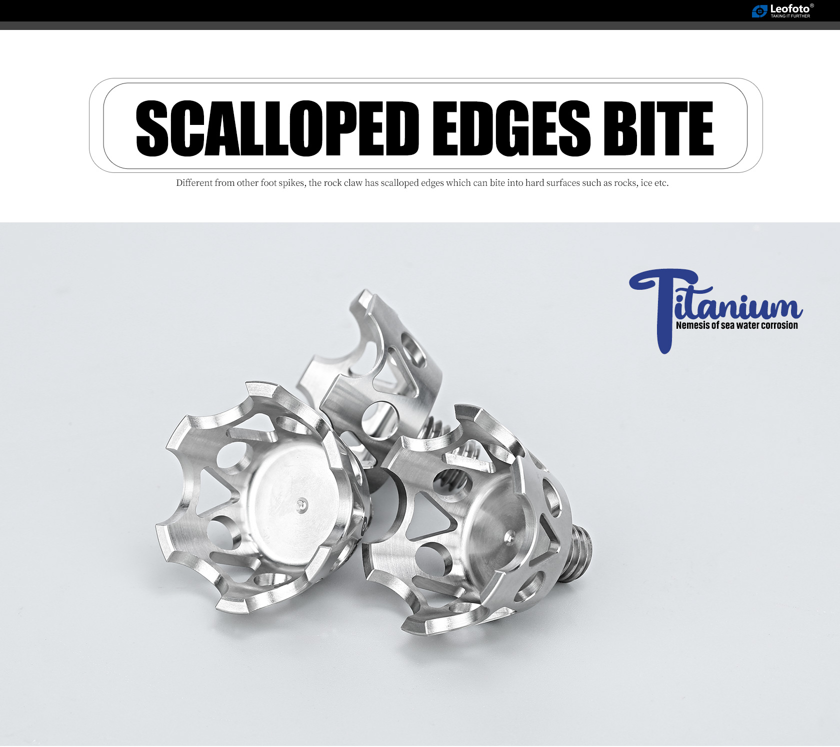 The Leofoto TF-02 Titanium Rock Claws are here to stabilize a tripod on any terrain. Constructed of titanium, these are corrosion resistant and ready for any environment. The TF-02 has scalloped, sharp-edged claws which are ideal for uneven, rocky terrain to dig into the ground and hold a good grip.