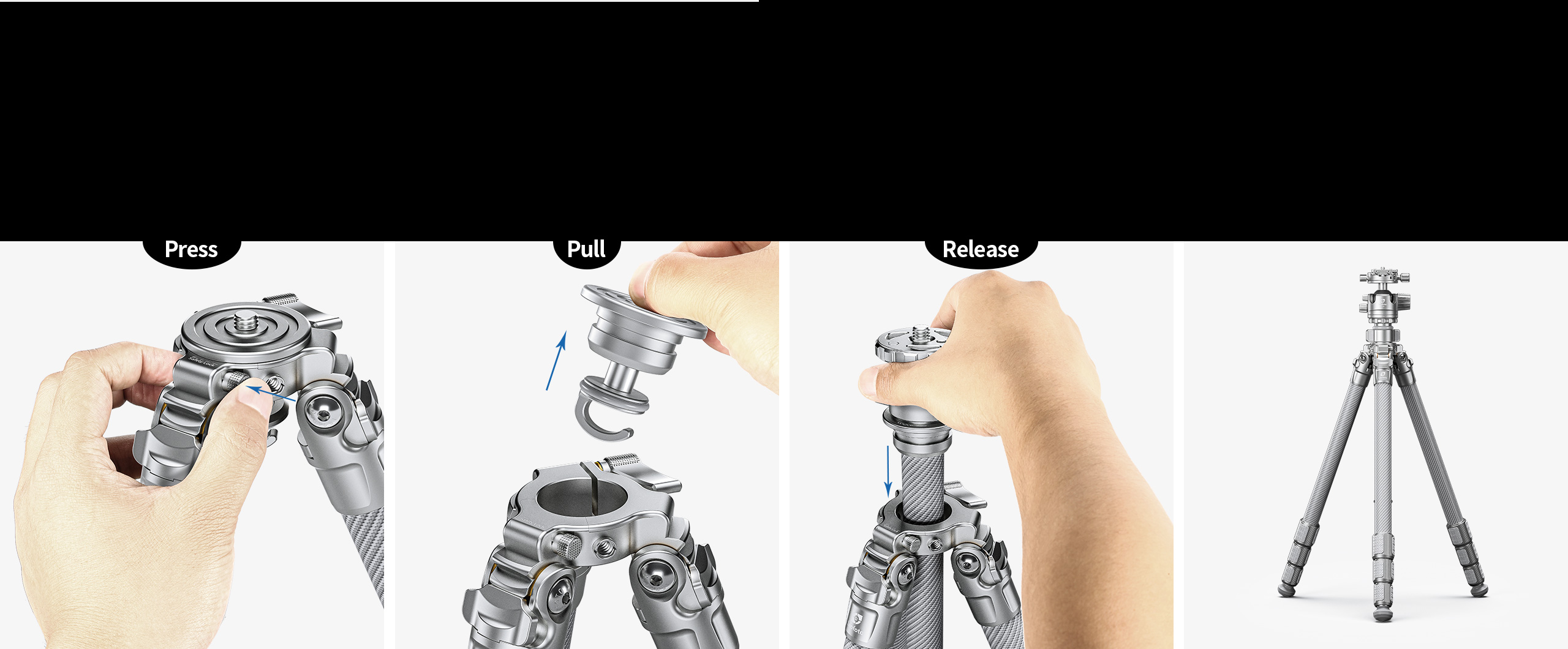 By pressing the safety lock to remove the center column or platform plate. ¼” threaded socket allows AM-1/AM-2 series magic arms to extend the use of mobile phone, or other accessories
