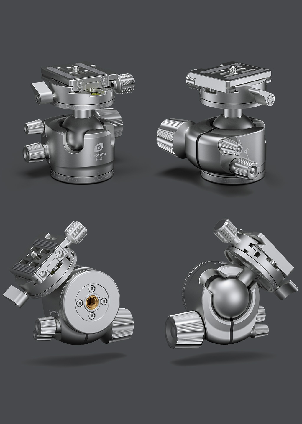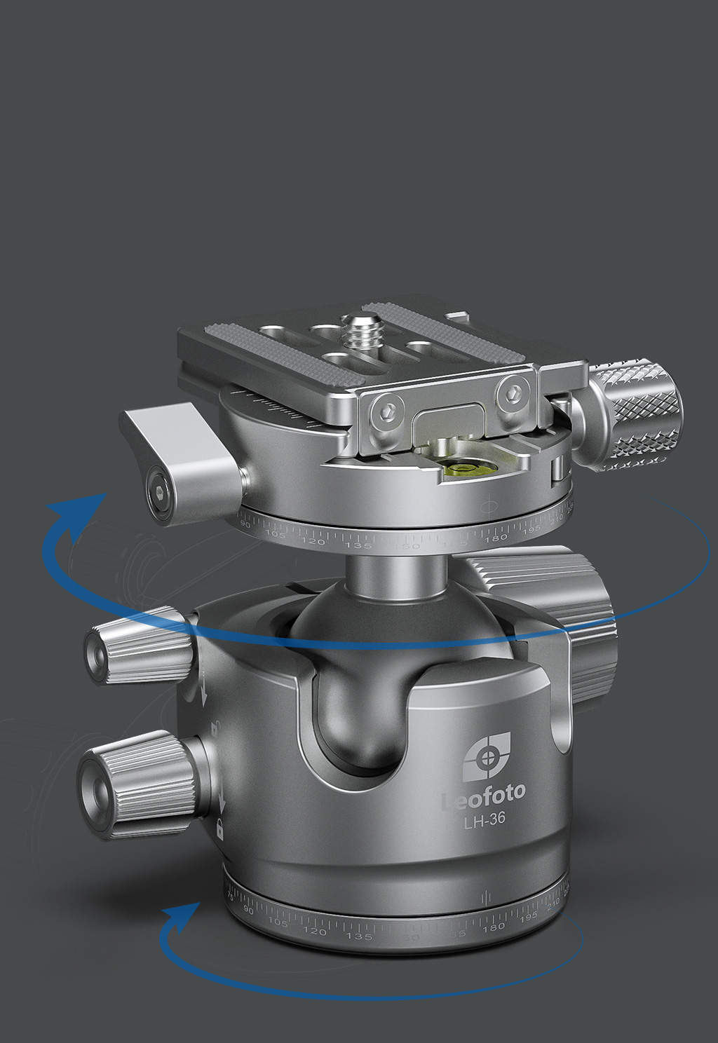 Ergonomic large main locking knob gives easy handling. Low height profile gives better reliability. Precisely machined ball makes the movement silky smooth. Dualdrop-nothes allow you easy change from landscape mode to portrait mode or other angle shots. Drag tension knob is with number for better control of the tension. Laser-engraved scale on the panning base for easy and precise control during panorama shooting.