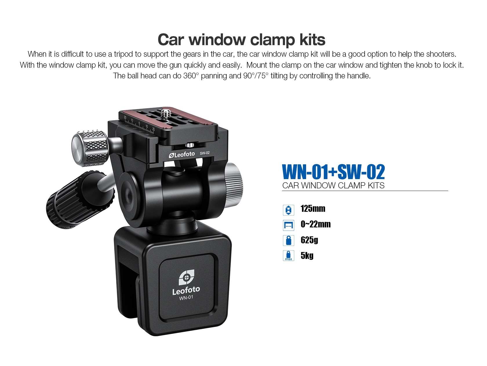 Leofoto WN-01+SW-02 Car Window Clamp Kit/ Windows Mounting Head for Binoculars/ Lens and Camera