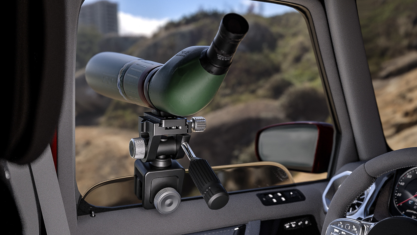 When it is difficult to use a tripod in the car, the car window clamp kit will come in handy. With the window clamp kit, you can move optics quickly and easily. Mount the clamp on the car window and tighten the knob to lock it in place. The ball head can do 360° panning and 90°/75° tilting by controlling the handle and there is a tension control knob on the side to adjust the friction. The window clamp kit features rubber along the clamp to protect your car window from damage. Included with the WN-01+SW-02 kit is a 70mm Q-R Plate.