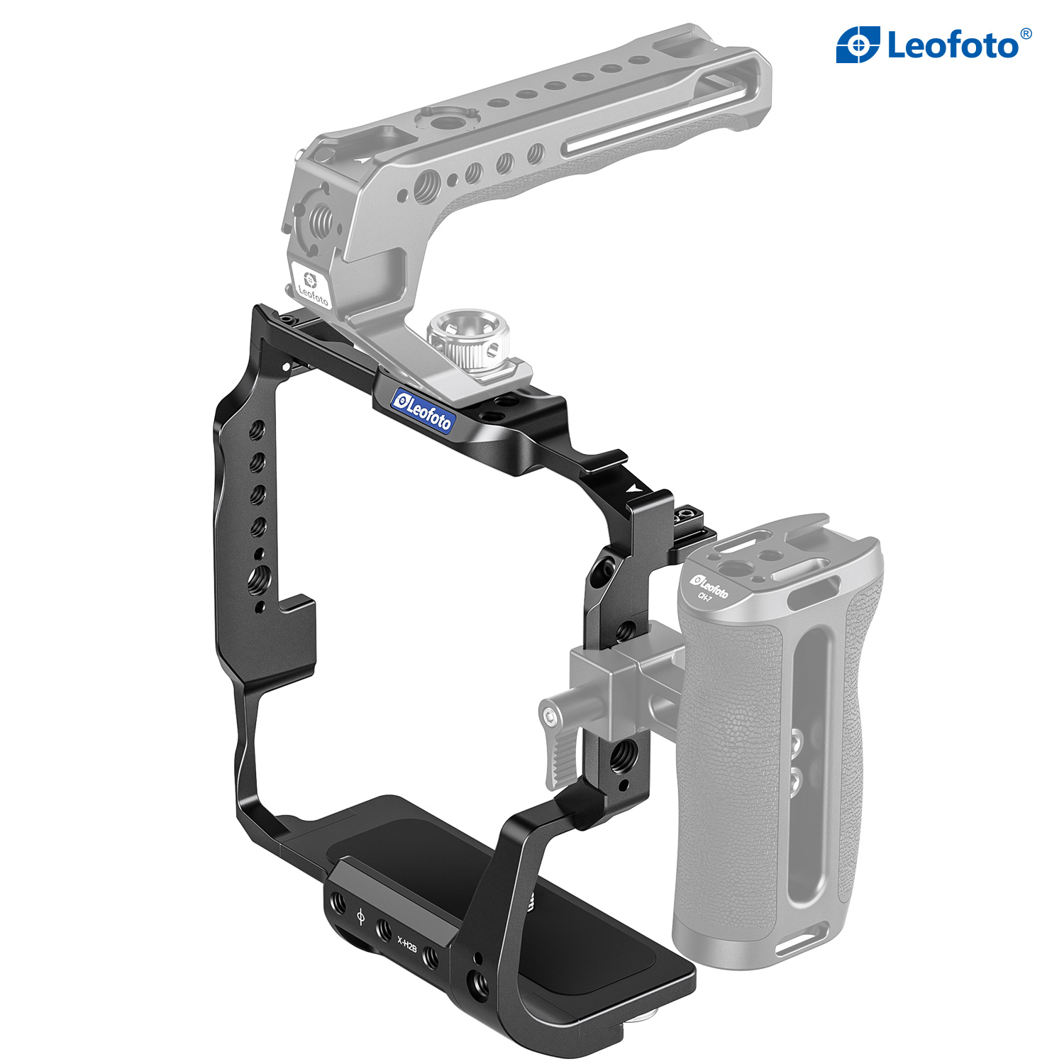 The Leofoto X-H2 Camera Cage for Fujifilm X-H2, X-H2S with FT-XH or VG-XH Battery Grip is precision machined from solid blocks of 6061-T6 aluminum. This cage features a 1/4”-20 mounting screw, compatible with any Arca-style clamp. The cage is precisely designed to fit the camera body without interference in the operation of the camera. There are multiple mounting threads on the cage to attach accessories such as microphones, handles, flashlights etc. There is also a magnetized allenkey on the bottom which is very convenient.