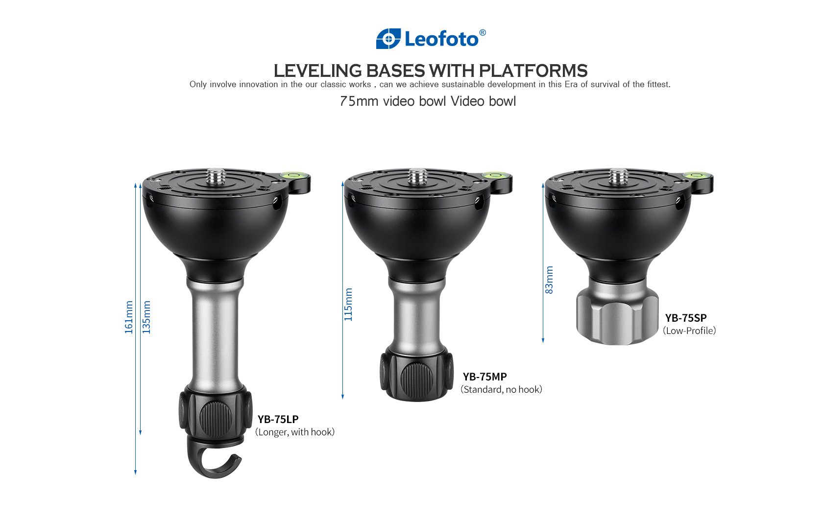 Leofoto YB-75LP / YB-75MP / YB-75SP | Leveling Base with Handle for 75mm Bowl | 3/8″
