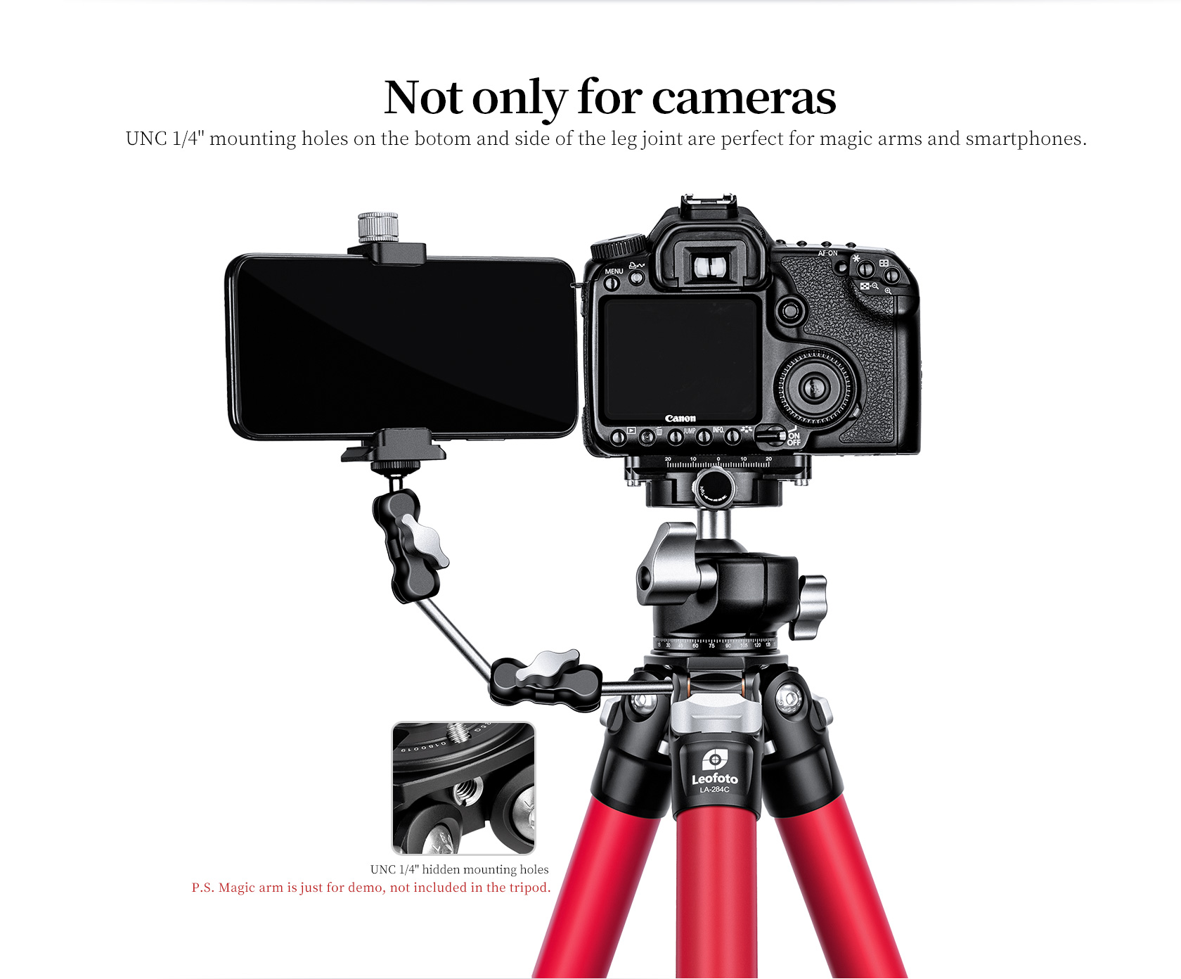 - 1/4″-20 threaded Accessory Socket for Monitor, Microphone, LED light or More